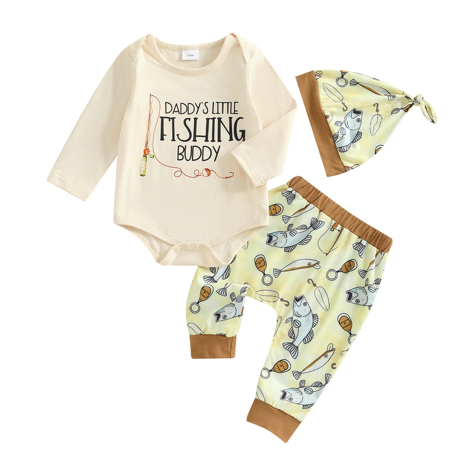 Baby Boys 3Pcs Outfits Long Sleeve Romper with Pants & Hat
